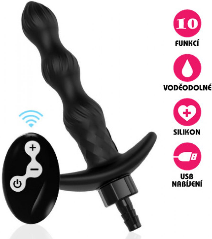 S touto anální sprchou se stane anální sex pro každého už jen slastí. Stačí malá chvilka a již nikdy se Vám při análním sexu nestane nepříjemná nehoda spojená s únikem stolice. Sprcha je vyrobená ze 100% silikonu a disponuje 10 různými druhy vibrací. Pro snazší manipulaci vybavena dálkovým ovladačem. Napojení na klasickou sprchovou hadici, nebo pomocí adaptéru na gumovou hadičku. Napájena je Lithi...