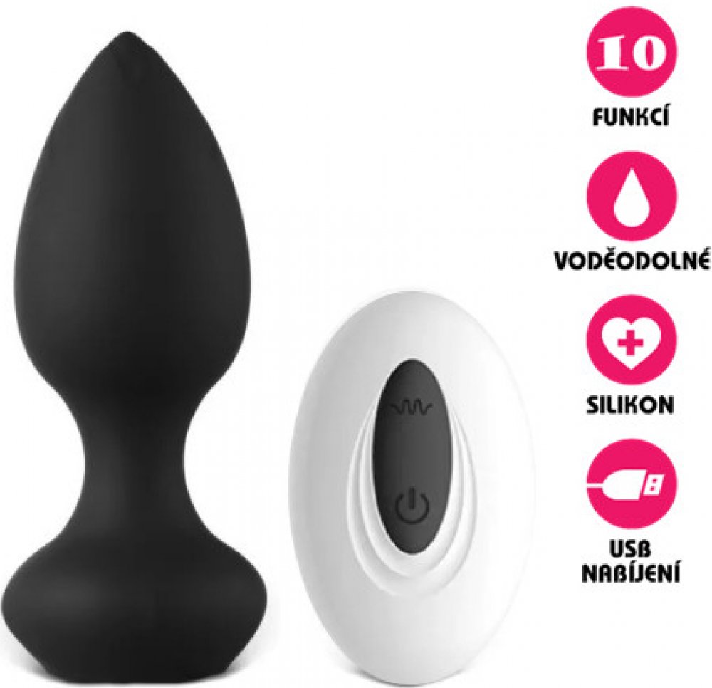 Voděodolný, anální kolík, vyrobený z kvalitního 100% silikonu černé barvy, který disponuje 10-ti druhy různých vibrací, které můžete ovládat buď tlačítkem přímo na kolíku, nebo jednoduše na dálkovém ovladači, který je součástí. Tento kolík obsahuje dobíjecí Li-Ion akumulátor, takže k jeho provozu nepotřebujete klasickou baterii a dobíjí se prostřednictvím USB kabelu, který je součástí balení.