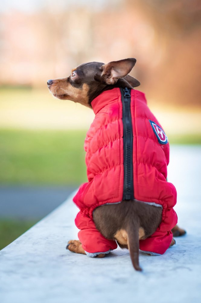 Teplá prošívaná kombinéza pro psa je stylovým a praktickým oblečkem pro každého čtyřnohého chlupáčka. Její předností je střih, který nebrání pejskovi v pohybu, a přitom zakrývá celý hřbet, bříško i tlapičky. Přitom se jednoduše obléká, díky zapínání na zip na hřbetní straně. Kvalitní polyester s příjemným podšitím z fleecu, zahřeje kožíšek v chladném počasí a zároveň ho brání před ušpiněním. Ideální je tedy do chladného počasí roku, především na podzim a zimu. Velikostně vhodná pro malá plemena psů. V případě ušpinění nabízí možnost praní v pračce při 30 °.