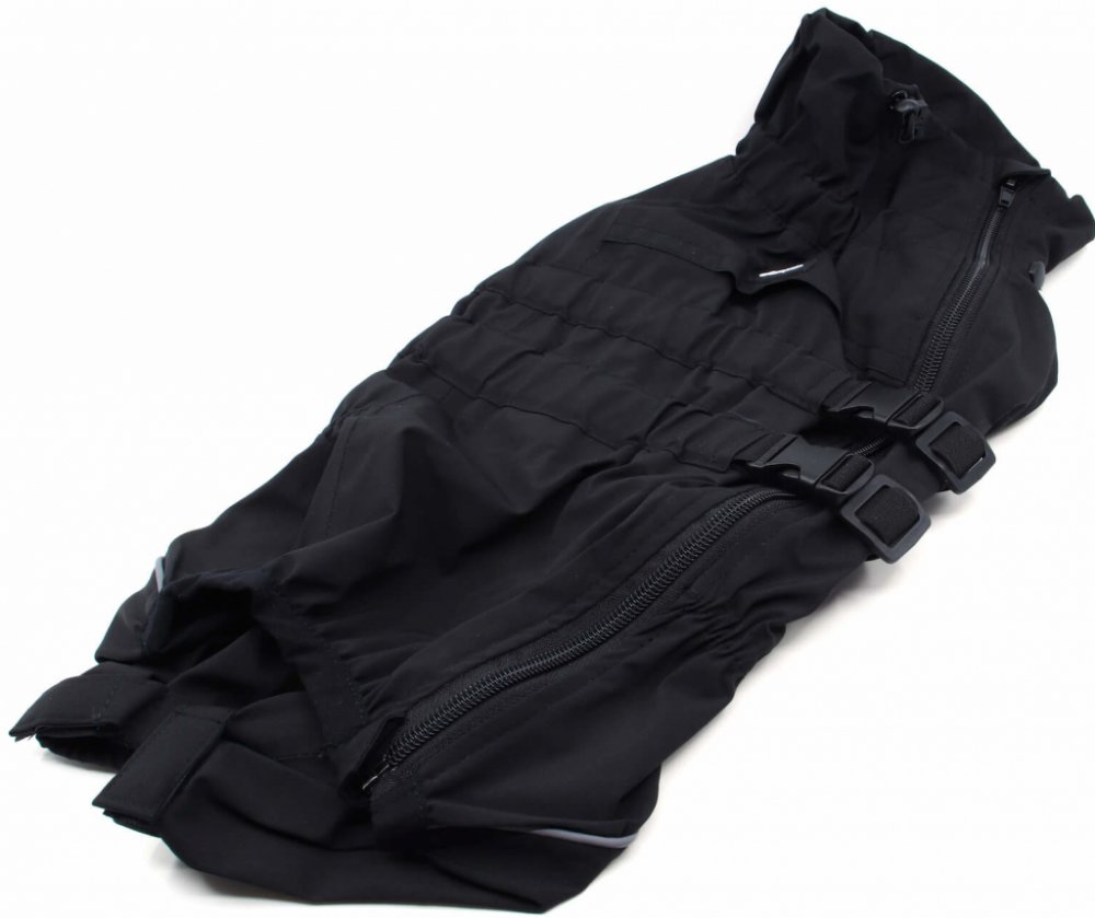Majitelé štíhlejších mazlíčků potěší také úprava a stažení v oblasti hrudníku. Při zapínání doporučujeme nejprve zapnout patent u límce, poté zip a nakonec kombinézu zafixovat pomocí přezek. Reflexní prvky po stranách oblečku se skvěle hodí k večernímu venčení, kdy dokáží zvýšit viditelnost mazlíčků. Sportovní vzhled oblečku dodá pejskům styl ve městě i v lese. Víme, že čtyřnozí průzkumníci milují objevování kaluží, válení se ve sněhu, prolézání křovím a další dobrodružství. Oblíbené aktivity mohou obleček rychle zašpinit. V takovém případě lze kombinézu bez problémů vyprat v pračce.