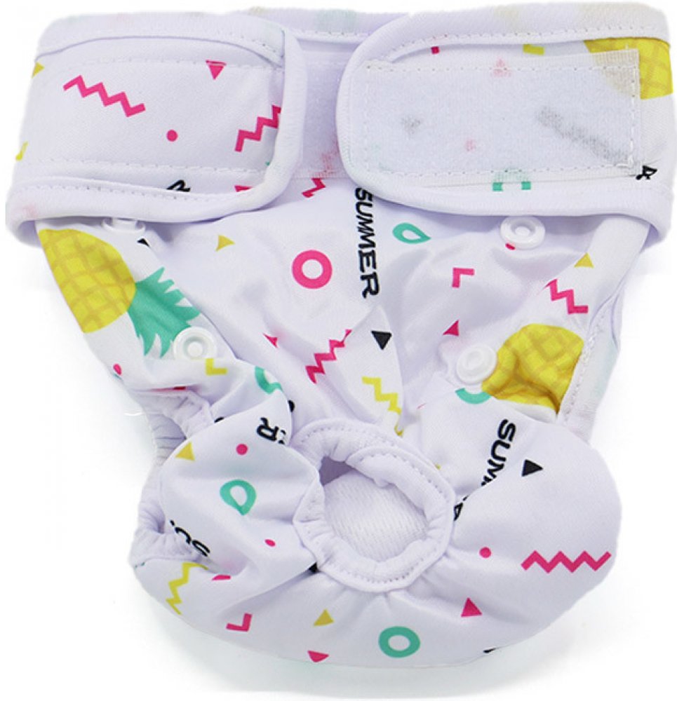 Zapínání: Otočte kalhotky kolem boků psa a zapněte je na druhé straně, buď ve slabinách nebo v pase.