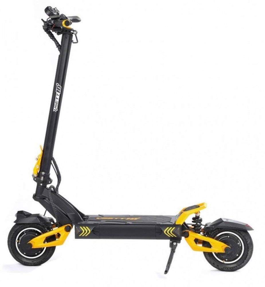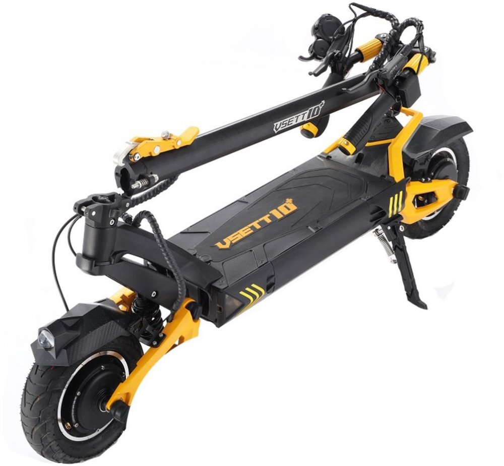 Elektrická koloběžka Vsett 10+ s novým centrálním dislejem je osazená dvěma motory o výkonu 1400W (celkový výkon 2800W), baterií 20,8Ah s dojezdem 65Km maximální rychlostí 75km/h.