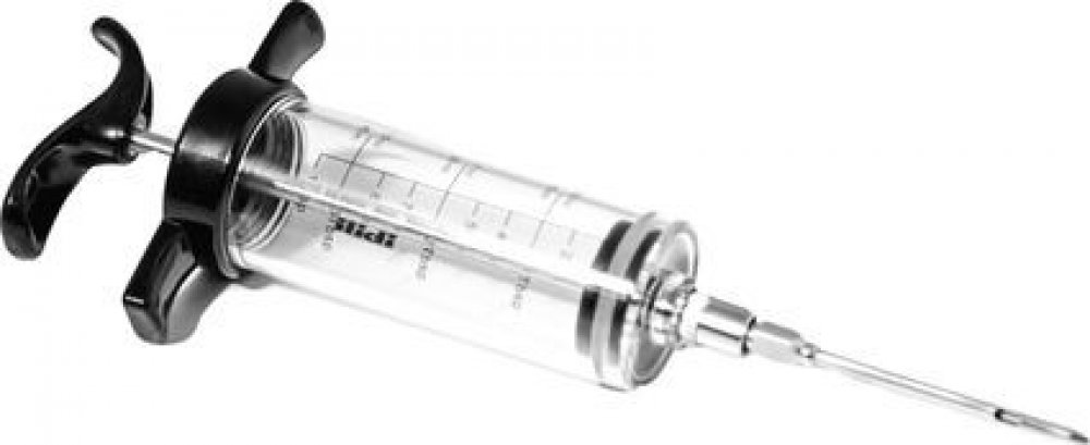 Marinovací jehla z plastu a nerezové oceli je vhodná k nasolování a marinování masa. Dávkování je jednodušší díky stupnici dělené po 5 ml. Jehla má boční otvory, které usnadňují vstřikování roztoku do masa. Umožmuje tedy i marinování olejem s kořením. Tato nastřikovačka vám zaručí rychlé a precizní prosolení masa. S použitím této marinovací jehly bez problému připravíte na gril i celé kuře, krůtu...