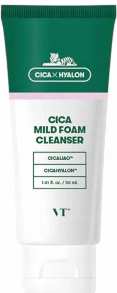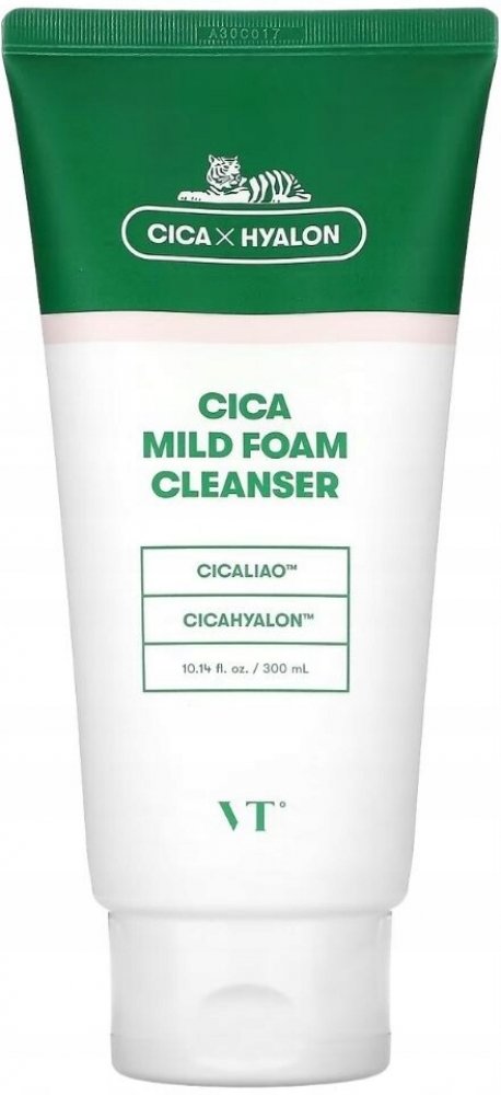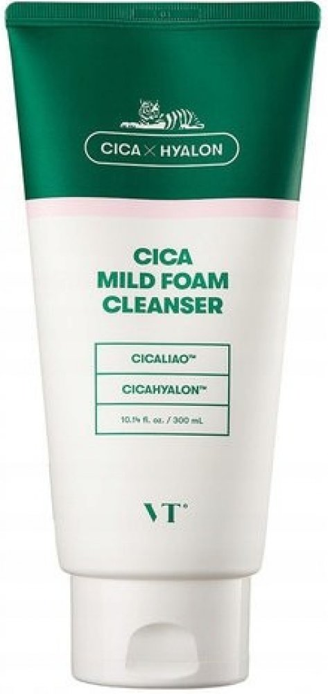 VT Cosmetics Cica Mild Foam Cleanser – čisticí pěna na obličej na bázi pupečníku asijského. Jemně čistí pokožku od nečistot, zklidňuje a nevysušuje. Čistící pěna nenarušuje ochrannou bariéru pokožky. Díky obsahu extraktu z pupečníku asijského zmírňuje podráždění a snižuje zarudnutí. Navíc působí protizánětlivě.