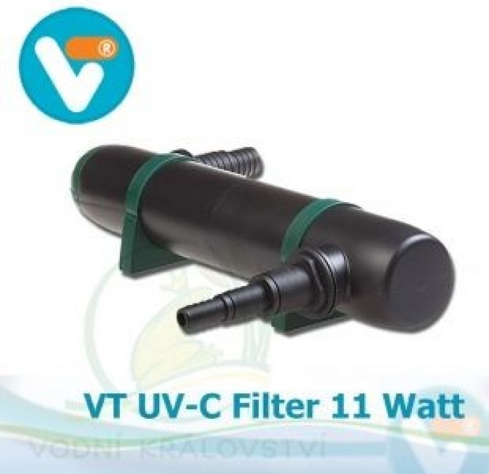VT UV-C Filter 11 Watts mohutným tělem s účinností o cca 20-30% vyšší než běžné hobby UVC.