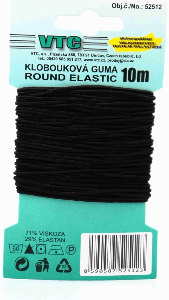 VTC Klobouková guma 1,2 mm - na kartě černá