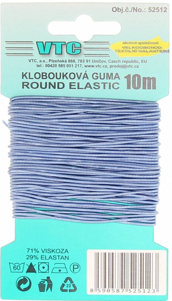 Klobouková guma světle modrá, s tažností 120-130%.