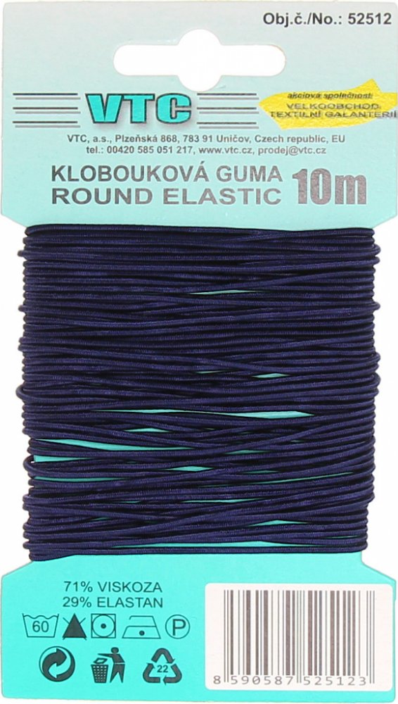 Klobouková guma tmavě modrá, s tažností 120-130%.