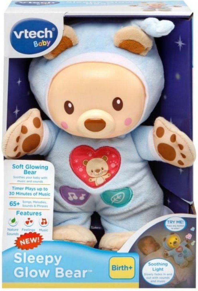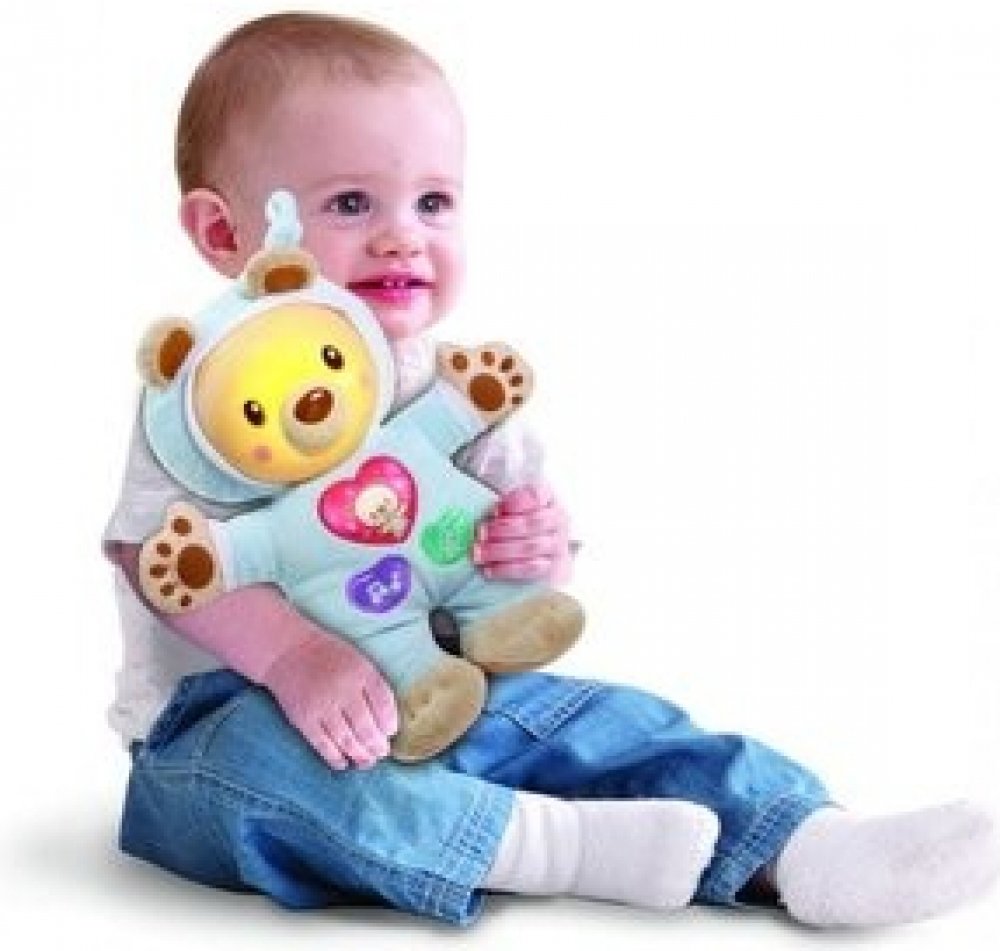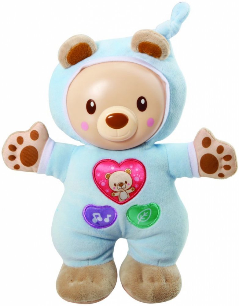 Hebký a měkký zářící medvídek pomůže dítěti se zklidnit a usnout. Stlačením látkových tlačítek uslyší dítě různé roztomilé věty, hudební zvuky nebo zvuky přírody. Hajánek rozvíjí motorické dovednosti a zároveň stimuluje sluchové vjemy dítěte.