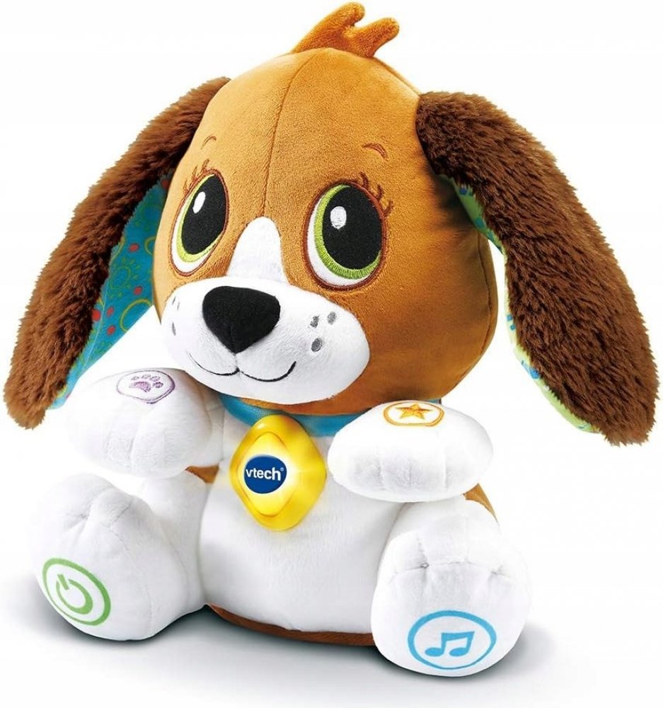 Vaše dítě si sedne k pejskovi, který mu s nadšením zazpívá oblíbenou písničku. Poté se společně pustí do objevování abecedy. Když vaše dítě řekne: "Miluju tě, pejsku!", slyší v odpovědi totéž. Ten rozzářený úsměv na tváři vašeho dítěte stojí za všechno.