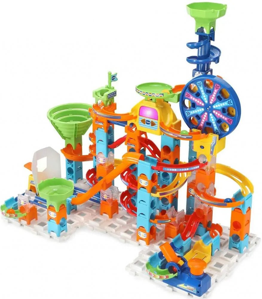 135 různobarevných dílků a točící se ruské kolo. Součástí je i vířivý kužel, který spouští hudební a světelnou show. Vyzkoušejte vzrušující rampy, rychlé dráhy, extrémní vystřelovače a základny, které se snadno spojují dohromady.