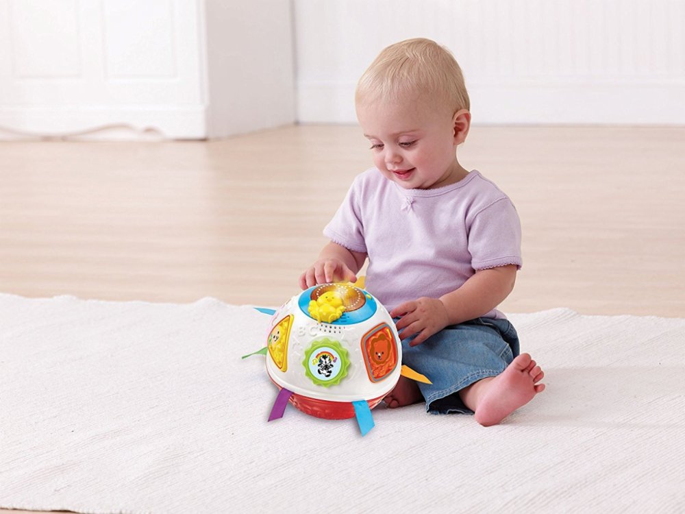 Vtech upovídaný míček na baterie má zabudové pohyblivé čidlo, takže je neustále v pohybu.