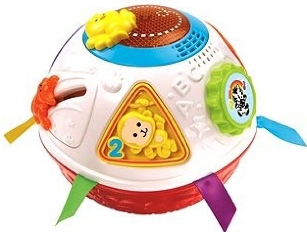 Míček hraje různé známé melodie, písničky a pokládá dítěti spoustu otázek.