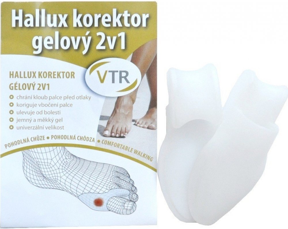 Hallux korektor 2v1 účinně chrání bolestivý kloub palce a zároveň pomáhá korigovat jeho vbočení. Kombinuje korektor i chránič v jednom. Je vyroben z měkkého a přizpůsobivého gelu, který zabraňuje vzniku otlaků. Korektor lze použít do jakéhokoliv typu obuvi a je omyvatelný. Po opláchnutí doporučujeme zapudrovat. - chrání kloub palce před otlaky- koriguje vbočení palce - ulevuje od bolesti - jemný ...