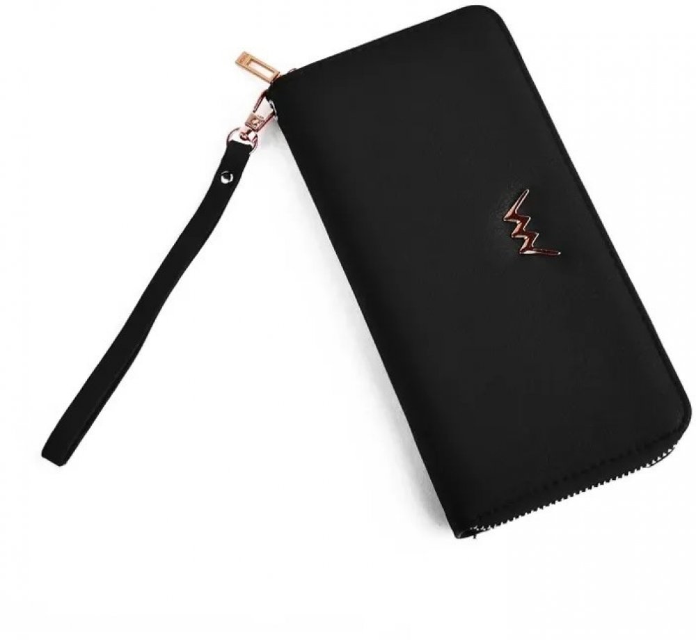 Vuch ze syntetické kůže dámské 20 x 10 cm elegantní na mince černá velké na zip jednobarevné