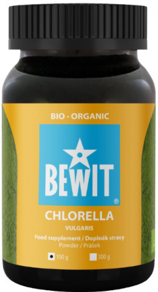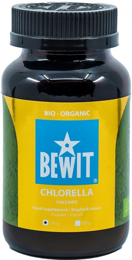 BIO CHLORELLA VULGARIS, PRÁŠEK je k dispozici ve dvou variantách: 100 g ve skleněné láhvi a 300 g v papírovém sáčku.