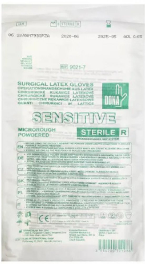 Sterilní chirurgické rukavice Dona jsou určeny pro všeobecnou chirurgii. Jsou velmi pohodlné a komfortní. Rukavice z přírodního latexu mají speciální povrch, který zabraňuje prokluzování nástrojů a usnadňuje uchopení. Manipulace s nástroji je možná ve vlhkých i suchých podmínkách. Rukavice jsou lehce zaprášené modifikovaným kukuřičným škrobem. Obsahují nízký obsah proteinů, tudíž snižují riziko alergií.K dispozici ve velikosti 8, tzn. šířka dlaně 99 mm, délka minimálně 270 mm a tloušťka minimálně 0,12 mm (jedna stěna).