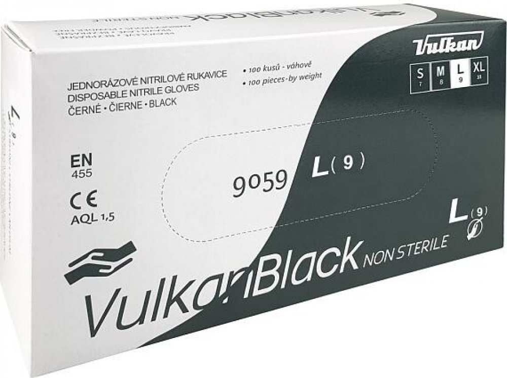 Vulkan jednorázové rukavice splňující nejnáročnější požadavky na ochranu a pohodlí zdravotníků i pacientů. Současně slouží jako ochranné pomůcky pracovníků v mnoha průmyslových a zpracovatelských oborech. Nitrilové rukavice neobsahují přírodní latex ani žádná zaprašovadla a nezpůsobují tak alergie. Výborně padnou, poskytují dokonalé pohodlí a dotekovou citlivost, to vše za skvělou cenu. Snadno se navlékají a přizpůsobují tvaru ruky. Rukavice jsou určeny na jedno použití. Charakteristika Vulkan jednorázové rukavice: V černém provedení. Nesterilní. Nitrilové, neobsahují latex ani žádná zaprašovadla. Bezprašné. Nezpůsobují alergie. AQL 1,5. Velikost L. Balení 100 ks. . Nitrilové rukavice neobsahují přírodní latex ani žádná zaprašovadla a nezpůsobují tak alergie.