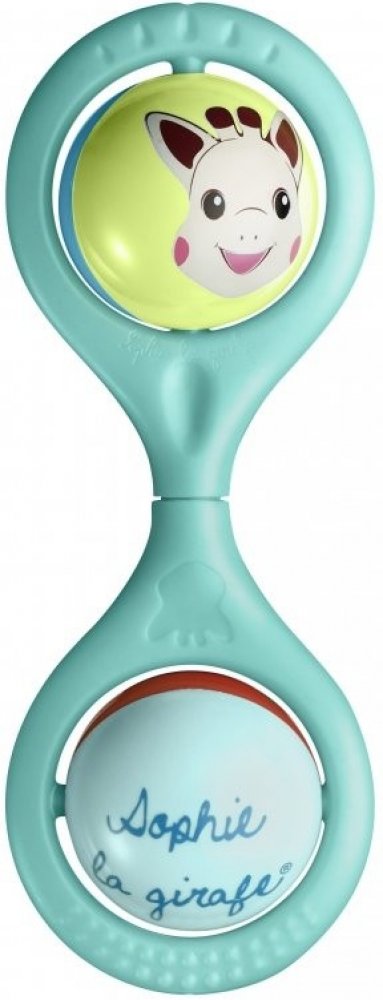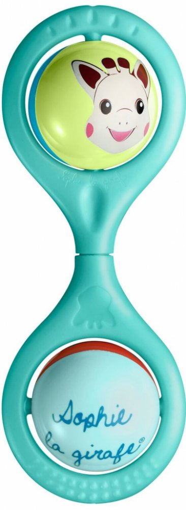 Jemné barvy a zaoblené tvary tohoto chrastítka si vaše děťátko přímo zamiluje. Dvě kuličky, které dítě může otáčet, mění barvy a hlava žirafy Sophie se točí kolem dokola. Zatřeste a užívejte si jemné zvuky.