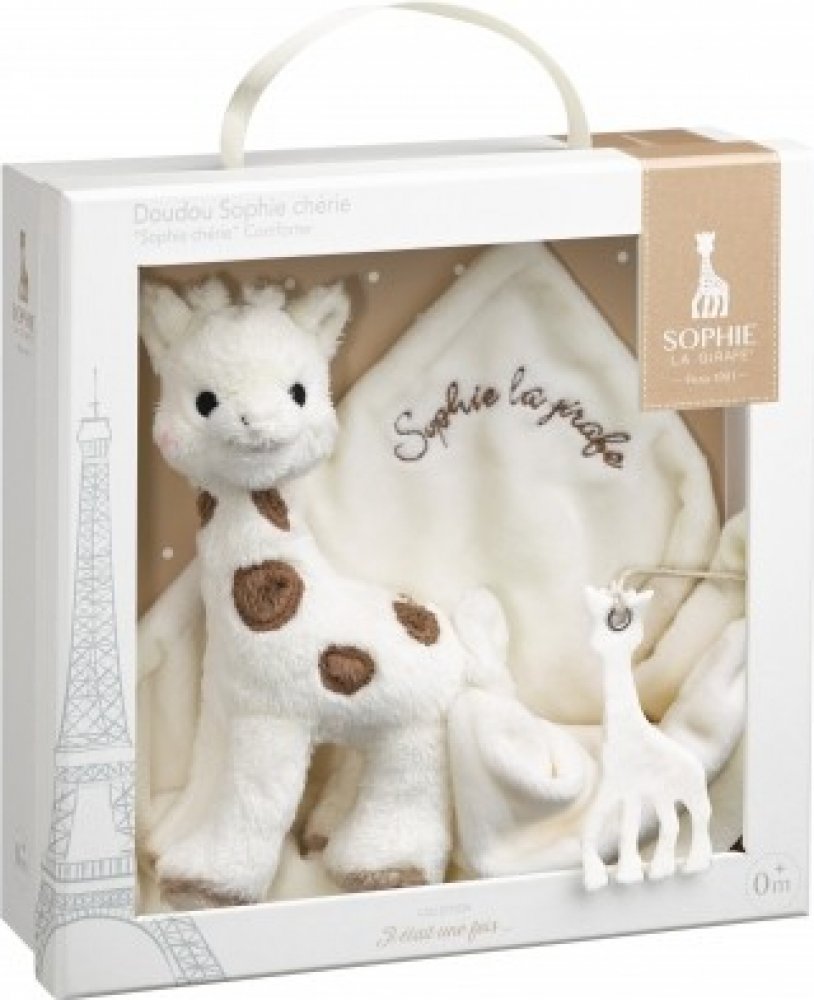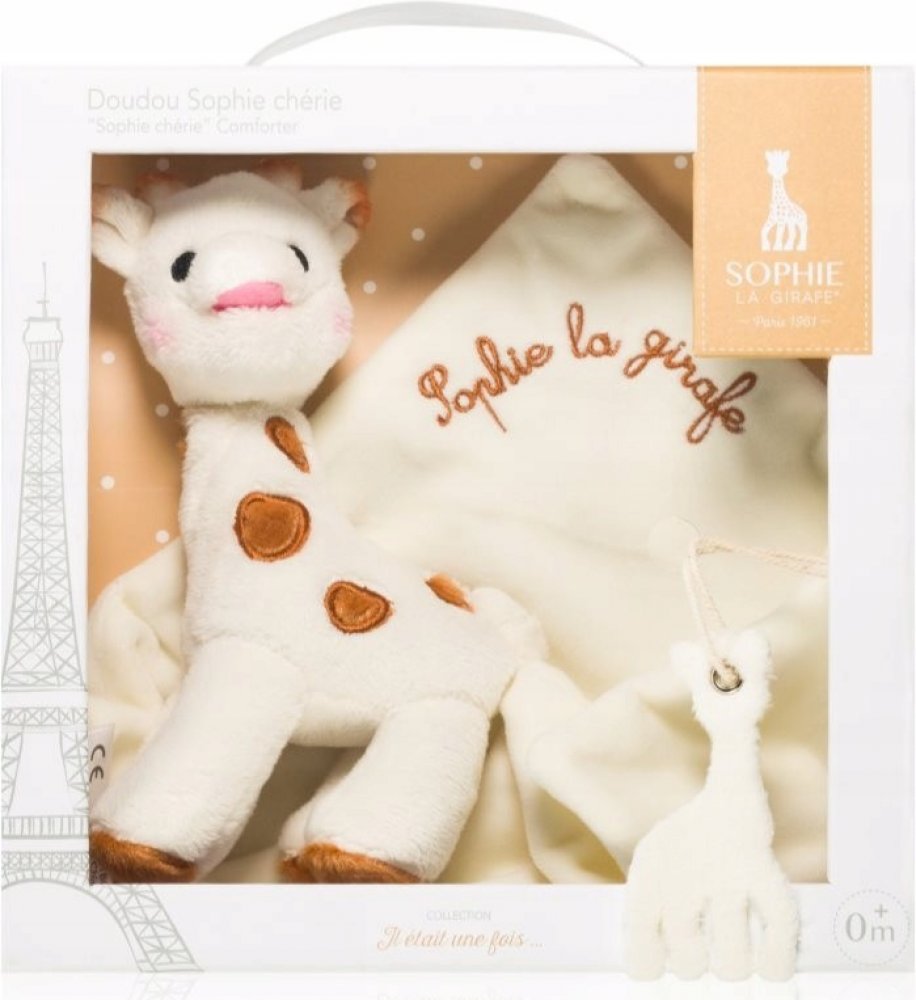 Doporučený věk: 0 měsíců+ Dárkový set Sophie Chérie (plyšová žirafka + mazlík)Ideální společník děťátka na celý den!