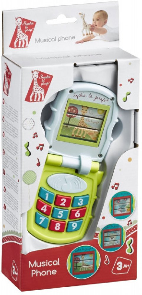 Telefon nabízí mnoho aktivit k objevování. Sklopný mobilní telefon se snadno otevírá a zavírá, na obrazovce se pak objeví žirafka Sophie a její kamarádi méďa Gabin a myška Josephine. Děťátko zaujmou barvy měnící se v rytmu hudby a 5 živých melodií. Telefon také vydává zábavné zvuky při stisknutí číselných tlačítek. Hračka vyžaduje 3 AAA/LR3 baterie.