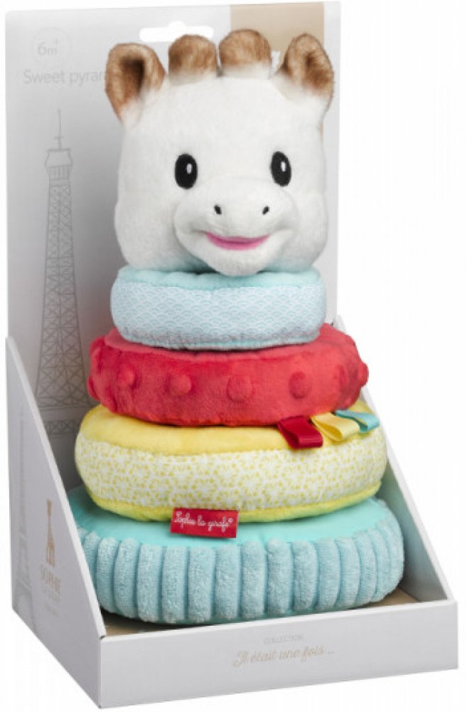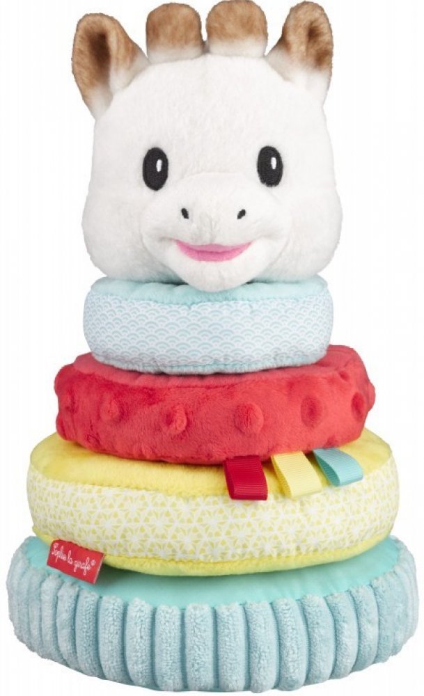 Tento zásobník pyramide je vyroben z látky a skládá se ze tří protiskluzových kroužků různých velikostí vyplněných pěnou. Ty lze na tyči naskládat jako Pyramide . Roztomilá plyšová hlava Sophie la Girafe se nachází na horní straně Pyramide . Četné aktivity l aden vybízejí k objevování: různé materiály a textury, malé látkové vlajky, praskající papír a zvonečky. Tato hračka podporuje zručnost a mot...