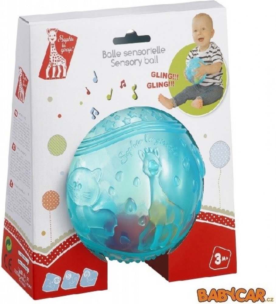 Tvarovaný povrch míče napomáhá rozvíjet hmat dítěte. Uvnitř míče můžeme pozorovat žirafku Sophii a její kamarády, hvězdičky a malé kroužky. Ideální pro rozvoj koordinace pohybů a obratnosti. Míč také zahrnuje barevné rolničky stimulující jeho sluch a zrak. Míč je lehký a snadno uchopitelný i malými dětskými ručičkami.