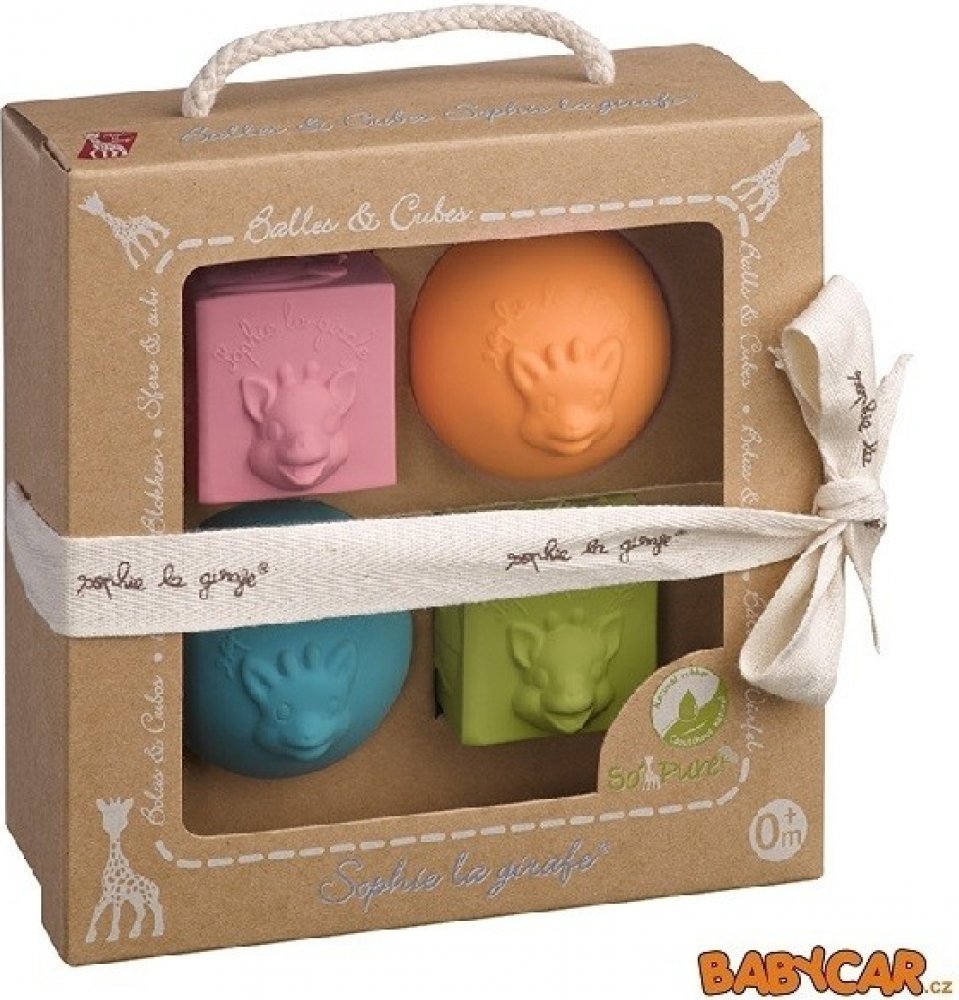 VULLI set 2x kostka, 2x míček z přírodního kaučuku ŽIRAFA SOPHIE z kolekce SO'PURE