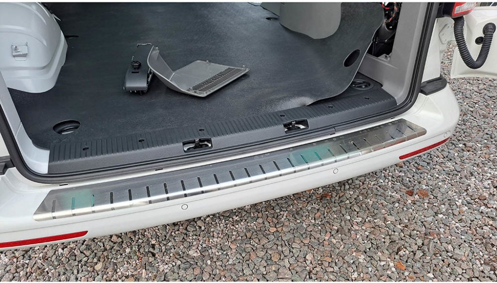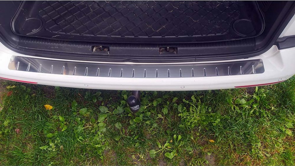 Tento kryt prahu pátých dveří je vyroben z kvalitní nerezové oceli (žádný laciný hliník ale poctivý kov), jejíž profil je ze dvou vrstev nerezu a vnější hrana ohybem přesahuje (chrání) lem nárazníku.