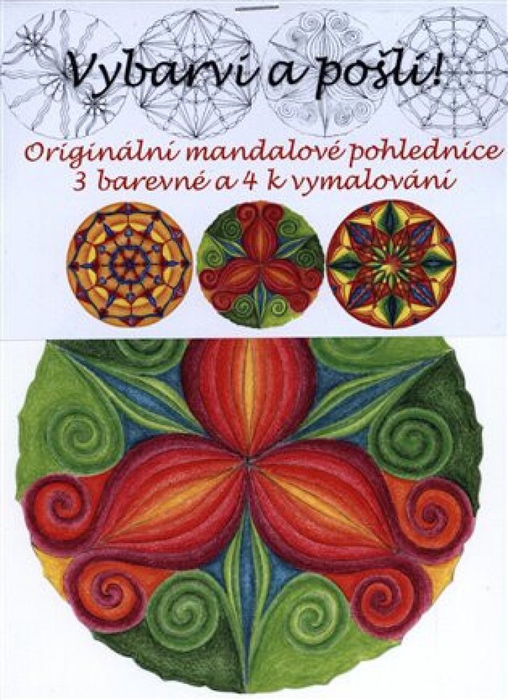 Vybarvi a pošli - soubor 7 originálních pohlednic Dity Vořechovské s motivem mandaly. 3 pohlednice jsou vymalované a 4 k vymalování, velikost 15x15 cm.
