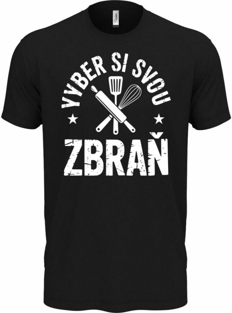Vyber si svou zbraň, bílý tisk.Pro všechny, kteří v kuchyni rádi bojují!Perfektní dárek pro každého, kdo bere vaření a pečení vážně. Ukažte, že se v kuchyni nebojíte.