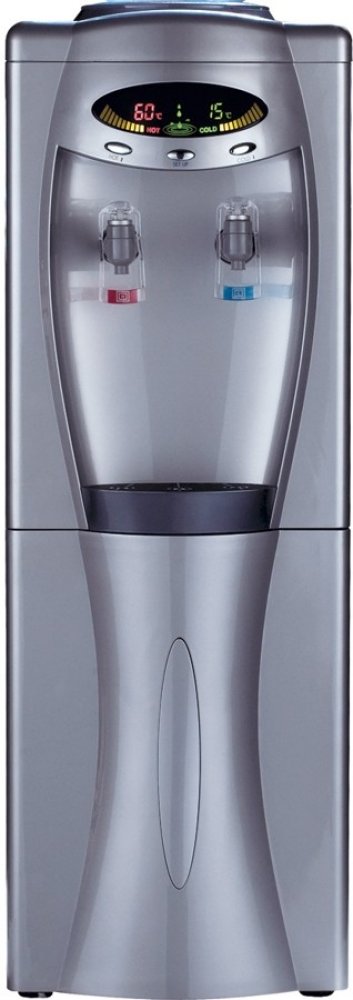 VÝSTAVNÍ KUSVysoký podlahový výdejník ve stříbrné barvě na studenou a horkou vodu vybavený programovatelným elektronickým displejem, který ukazuje teplotu studené a horké vody. Boky přístroje jsou ze stříbrného plechu a přední část ze stříbrného plastu. Na digitálním displeji lze vypnout či zapnout ohřev a chlazení, takže je možnost při vypnutí ohřevu čerpat z červeného kohoutku vodu nechlazenou a používat výdejník k výdeji vody chlazené a nechlazené (pokojová teplota). Je určený k postavení na zem. Uživatel má možnost si dle svého uvážení naprogramovat jak teplotu studené, tak teplotu horké vody.Výdejník je osazen 2 opěrnými kohoutky s možností 2 pozic čerpání vody.1. pozice: Kelímkem odtlačíme kohoutek od sebe a po dobu odtlačení teče do kelímku voda. Tuto polohu nelze zaaretovat.2. pozice: Páčku kohoutku přitáhneme k sobě a rychle vložíme pod kohoutek kelímek. V této pozici je páčka kohoutku zaaretována a voda teče nepřetržitě do doby, než páčku vrátíme mechanicky do svislé polohy.
