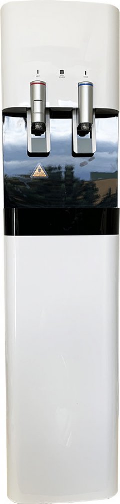 Vysoký podlahový výdejník v bílé barvě na studenou a horkou vodu určený k postavení na zem. Na zadní straně výdejníku se samostatně vypíná či zapíná ohřev vody a chlazení, takže po vypnutí lze používat vodu pokojové teploty. Mezi vypínači pro horkou a studenou vodu se nachází spínač ECO módu pro úsporu energie, který se řídí světelnými podmínka (tzn. že pokud je spínač ECO zapnutý, v okamžiku, kdy je v okolí tma, výdejník přestane nahřívat horkou vodu). Výdejník obsahuje 2 kohoutky a kohoutek na horkou vodu je opatřen dětskou pojistkou.