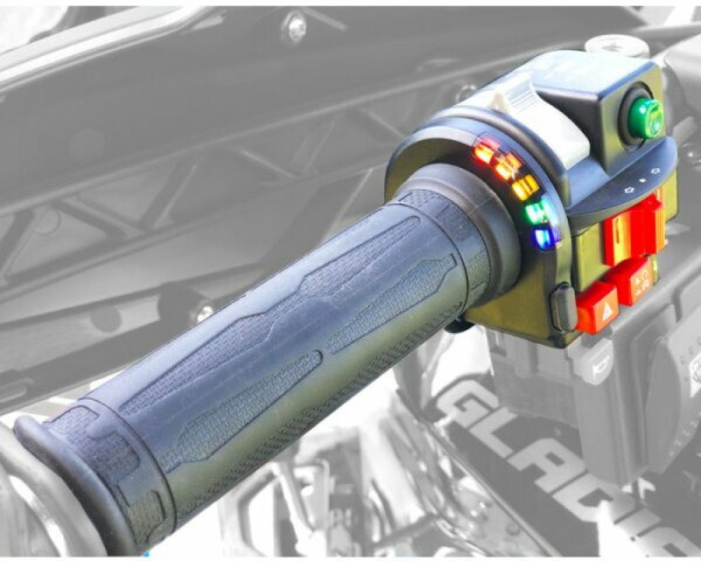 Osvědčené vyhřívané rukojeti a páčky plynu renomovaného výrobce KOSO s moderním a elegantním ovládáním intenzity výhřevu. Nové ovládání nenásilnou formou doplňuje ovladače na řídítkách a nenarušuje atraktivní design stroje.