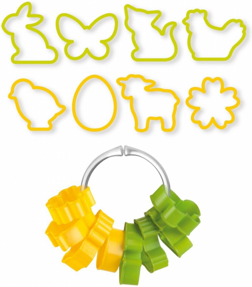 S velikonočními vykrajovátky DELÍCIA připravíte cukroví například ve tvaru zajíčka, kuřátka, vajíčka a motýlka. Vykrajovátka s 8 roztomilými motivy jsou uložena na praktickém kroužku.