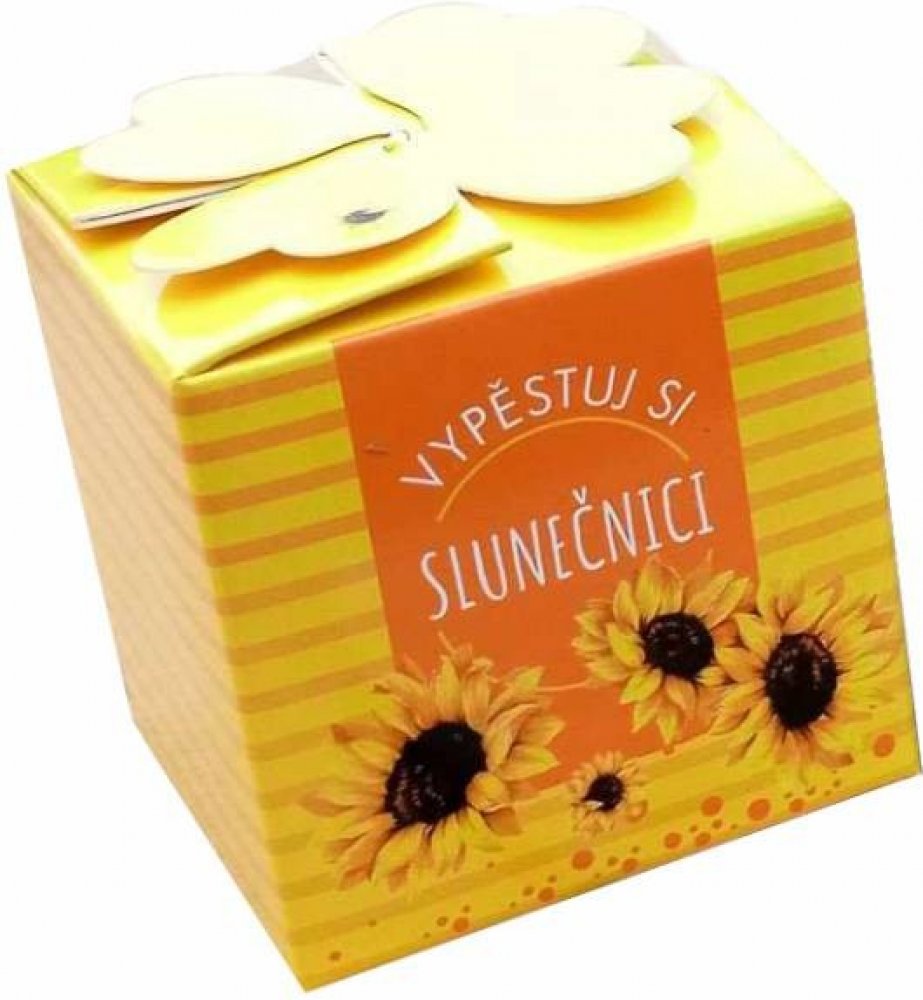 Originální sada Vypěstuj si Slunečnici. Nyní si můžete sami vypěstovat krásnou rostlinku slunečnice doma. Vše, co potřebujete, naleznete v naší krabičce. Pěstování je velmi jednoduché v domácích podmínkách, nicméně ještě lepších výsledků dosáhnete za vyšších teplot a větší vlhkosti. Zalijete speciální kompost v květináčku vodou, zasadíte semínka slunečnice a dále necháte pracovat přírodu.
