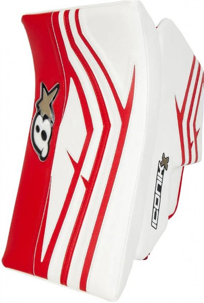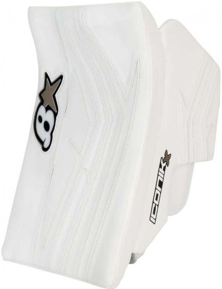 Druhý nejvyšší model řady Iconik pro sezónu 2024/25. Druhý nejvyšší model řady Iconik pro sezónu 2024/25. Popis: Konstrukce desky Prkno se zkoseným nosem: Prkno Iconik X blocker má strmý tvar, který nabízí lepší směrovou kontrolu; díky zkosenému nosu umožňuje nové deska Iconik X také lepší polohování pádlem dolů. Hranatý, vyvážený profil desky: Pro lepší rozložení hmotnosti je deska Iconik X postavena na hranatém, vyváženém profilu. Díky lepšímu vyvážení je model Iconik X v praxi hbitější a citlivější. Ochrana prstů a rukou Bočnice bez vázání s vysokou hustotou: Bindingless HD sidewall s vnitřním šněrováním pro snížení flexe mezi boardem a sidewallem. Vyložená nárazovými pěnami High Density, které pohlcují a tlumí nárazy puku, aby bylo možné kontrolovat zbloudilé puky a předcházet zranění rukou. Tvarovaná ochrana prstů High Density s výklopným palcem HD: V kombinaci s výklopným palcem High Density zajišťuje správnou ochranu prstů a palce při méně omezujících pohybech pádla. Přiléhavost a mobilita Zesílená dlaň: Iconik X je vybaven prémiovou dlaní ze syntetického semiše, která je přes střed dlaně a ukazováčku vyztužena reliéfním semišem. Podobně jako u SureGrip od True pomáhá reliéfní semišová vrstva zajistit úchop odolný proti vlhkosti se zvýšenou odolností. Tradiční páskování: Odolný pásek na suchý zip zajišťuje zápěstí, polstrované prodyšnou síťovinou AirKnit od společnosti Brians, která zajišťuje pevné a pohodlné nošení. Široká manžeta: Široká manžeta umožňuje méně omezující umístění vyrážečky se sníženou vazbou mezi manžetou vyrážečky a rukávy hrudního chrániče.
