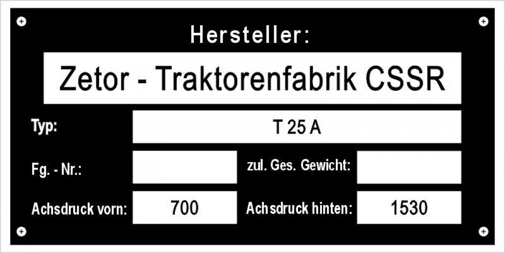 Výrobní štítek Zetor 25A Traktorenfabrik