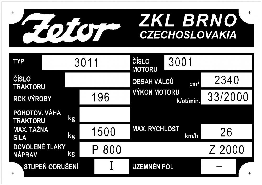 Výrobní štítek Zetor 3011 pol