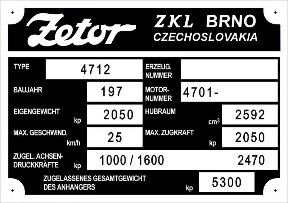 Výrobní štítek Zetor 4712 DE