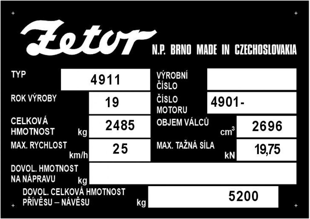 Výrobní štítek Zetor 4911 černý