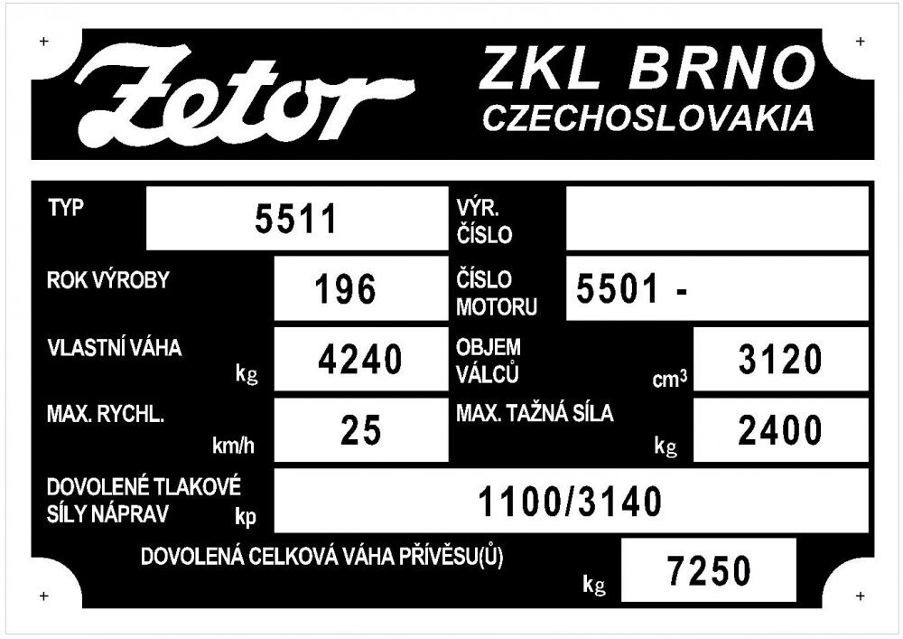 Výrobní štítek Zetor 5511