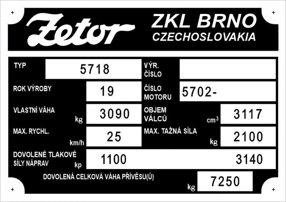 Výrobní štítek Zetor 5718