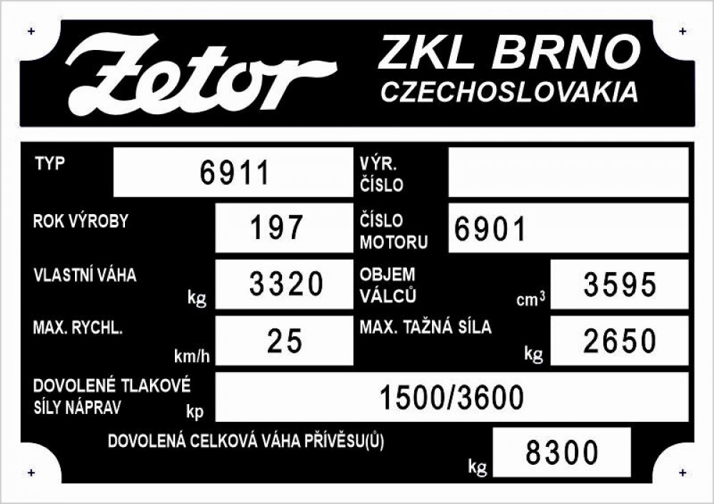 Výrobní štítek Zetor 6911 ZKL rok 197