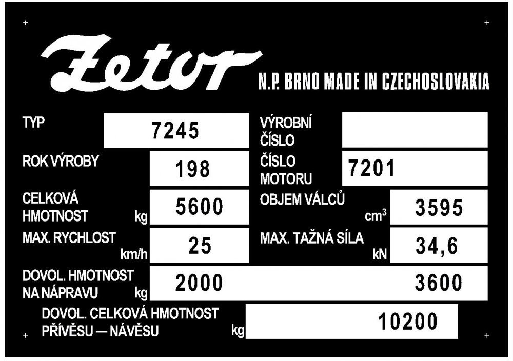 Věrná replika původních štítku.Provedení elox. hliník. Doživotní záruka na černou barvu.Další služba: Na výrobní možný dotisk nebo ražba (raznice 4mm) Vašich údajů. Dotisk nebo ražbu Vašich údajů nutno doobjednat jako "Ražba údajů" nebo "Dotisk údajů". Do "Poznámka k objednávce" potřebujeme vyplnit údaje Vašeho stroje dle TP (číslo stroje tj. VIN, rok výroby, číslo motoru pokud třeba). Razíme pouze tyto zmíněné, u dotisku není počet údajů omezen (omezující je pouze velikost polí štítku). Pište prosím heslovitě.