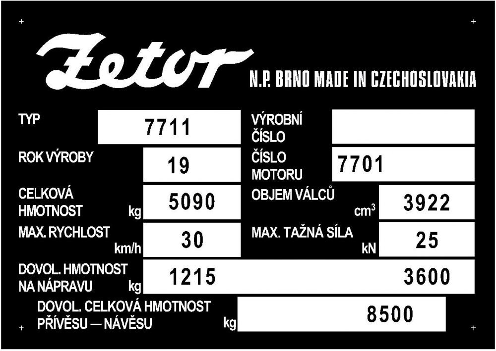 Výrobní štítek Zetor 7711