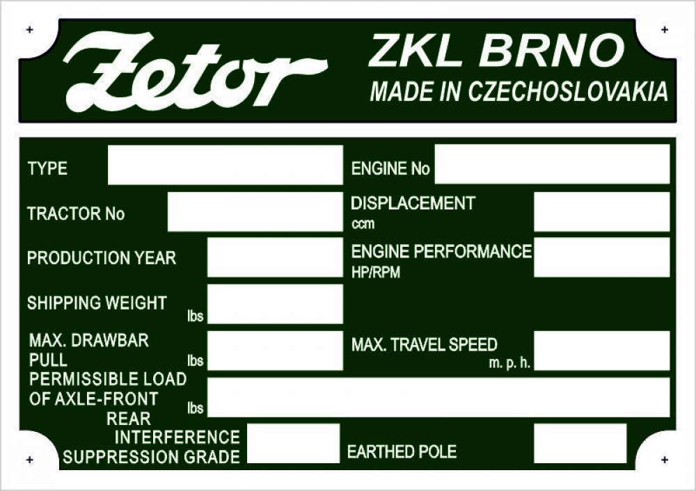 Výrobní štítek Zetor nevyplněný EN zelený