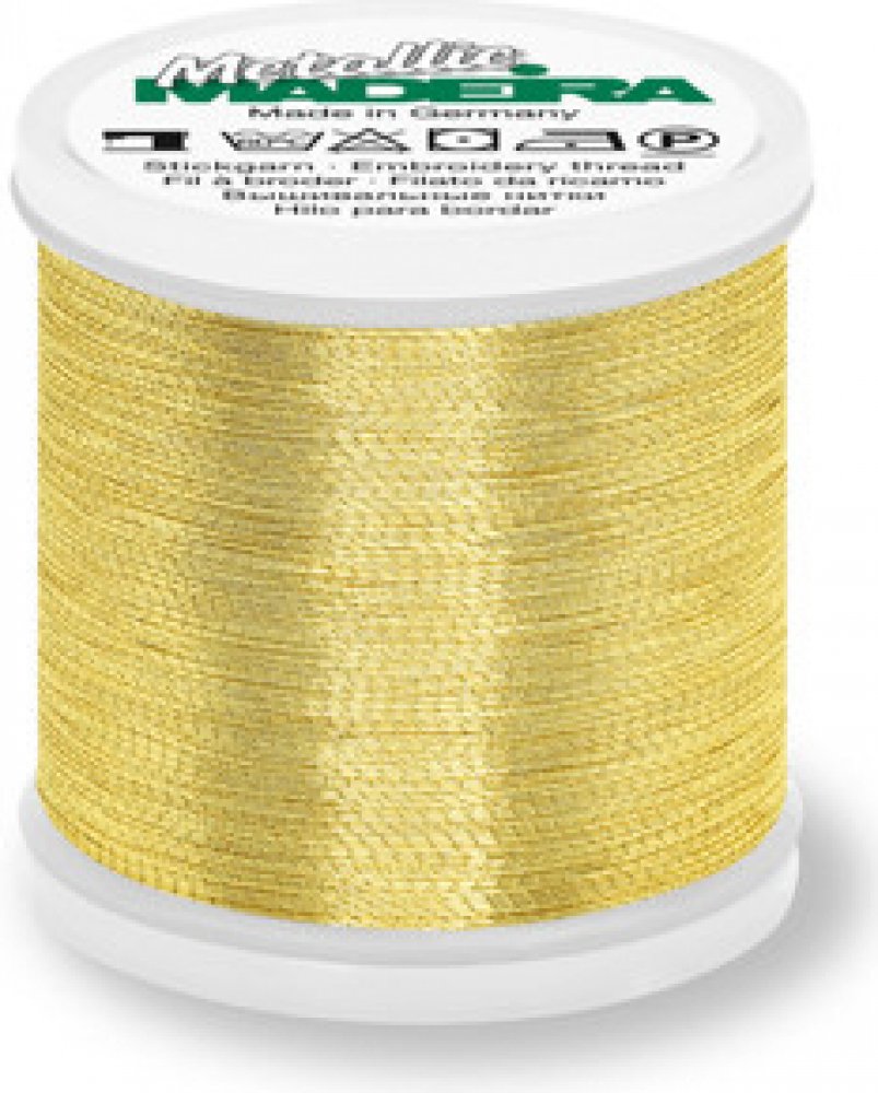 Vyšívací nit Madeira Metallic Brilliant 40 (200m) Nit Madeira Metallic je vyšívací nit určená pro strojové vyšívání. Metalické nitě vytváří velmi efektivní výšivky s dotekem elegance a nádechem luxusu. Metalická vyšívací nit Brilliant je metalizovaná čistým stříbrem, které dodává výšivce klasickou eleganci a nádech luxusu. Příze je speciálně upravená pro vyšívání nejnáročnějších tkanin při nejvyšší rychlosti stroje, a to bez přetržení nitě. Složení nití Metallic Brilliant 40: 60% viskóza, 40% polyester metalizovaný Návin: 200 m Údržba: