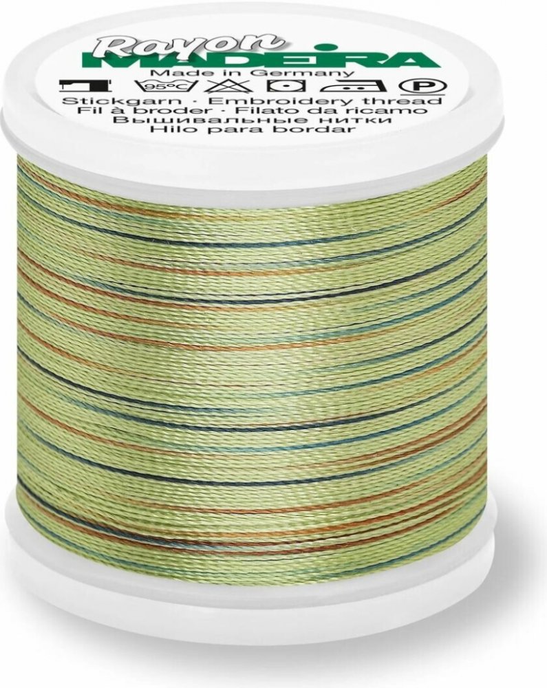 Vyšívací nit Madeira Rayon Potpourri č. 40 (200m) Vysoce kvalitní vyšívací nit z viskózového vlákna. V návinu 200 m. Používá se jako horní efektní nit pro vyšívání. Nit je ideální pro jemné zdobné stehy. Brilantní barvy s hedvábným leskem. Nit Rayon Potpourri se vyznačuje malými barevnými pruchy v různých odstínech, které vytvářejí skvrnitý efekt. Složení nití Rayon Madeira - 100 % viskózové vlákn...