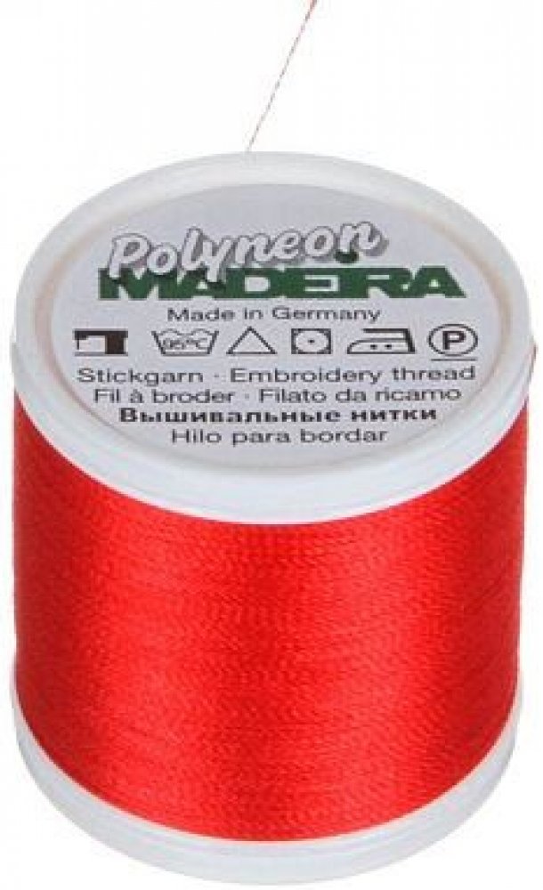 Vyšívací nitě PES Madeira Polyneon (400m) Nit Madeira Polyneon je polyesterová nit, která je ideální pro vytváření výšivek na sportovním oblečení, plavkách a často praných materiálech. Vyšívací nit Madeira Polyneon je odolná nit, vhodná pro strojové vyšívání, prošívání, dekorativní šití i šití aplikací. Nitě Polyneon jsou extrémně odolné. Polyneonové barvy zůstavají zářivé, výrazné a lesklé i po častém praní a vystavování slunečnímu světlu, chloru nebo otěru. Pro vyšívání nití Polyneon doporučujeme použití jehel 80/12. Složení nití Polyneon: 100% polyester Údržba: